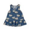 Soft cotton dress with a cinched waist and a frill details.