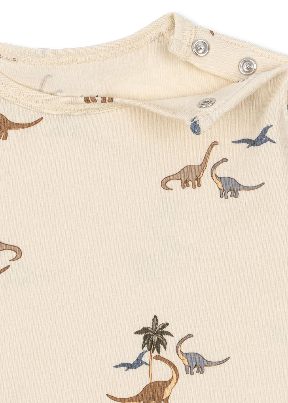 Classic onesie in a soft organic cotton blend with a hint of stretch. Designed with snap buttons on the shoulder and along the legs for easy dressing.