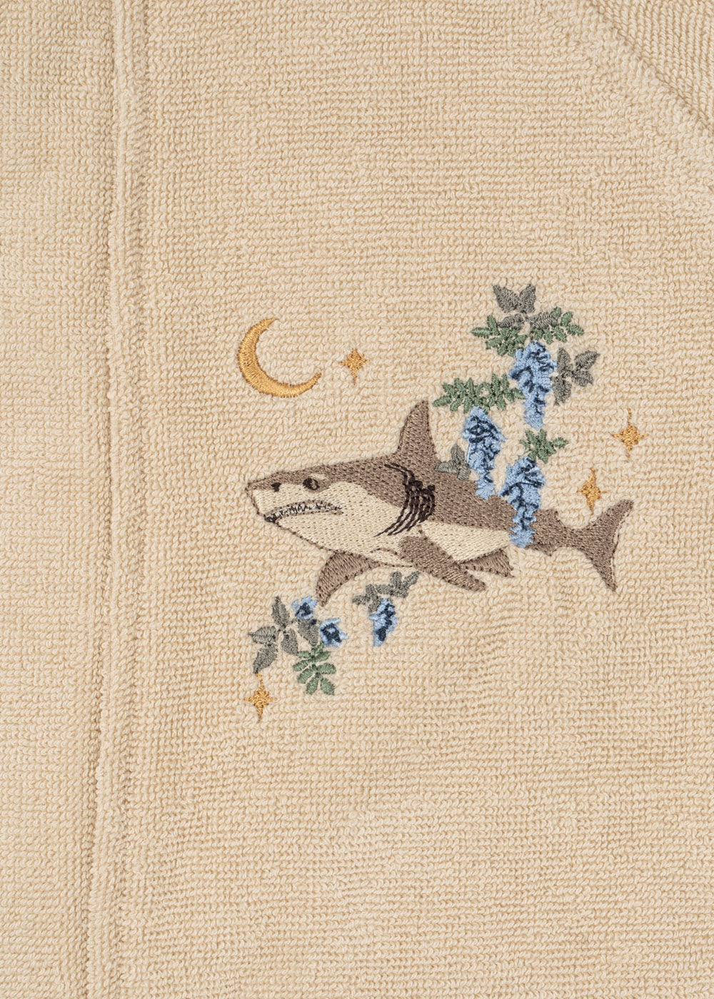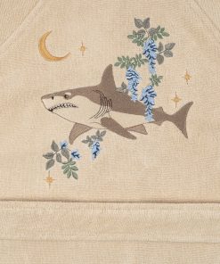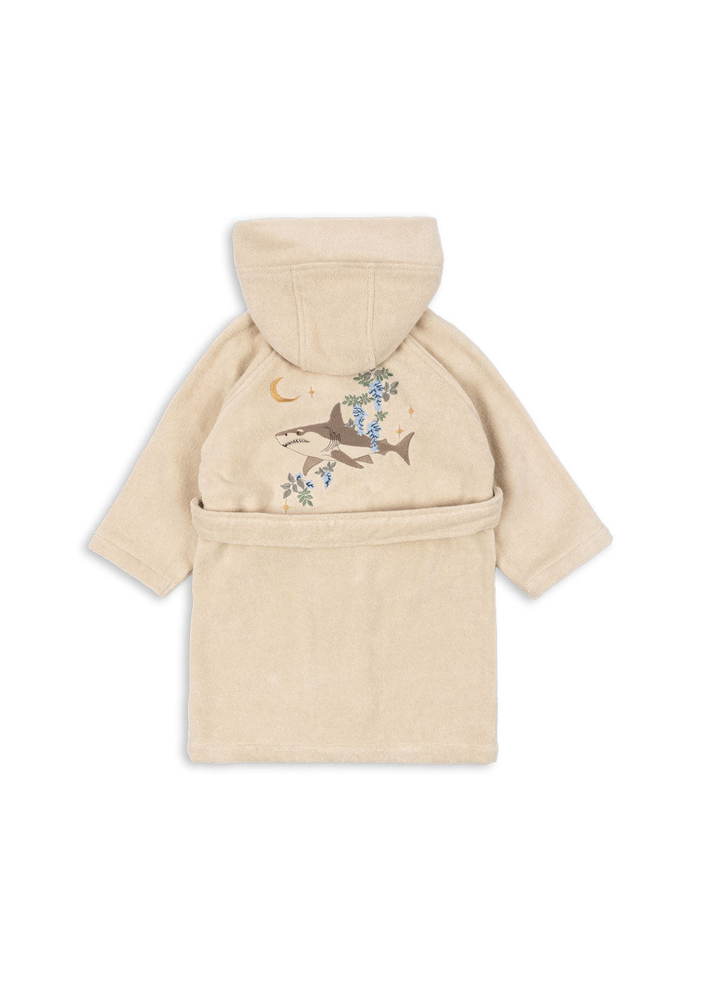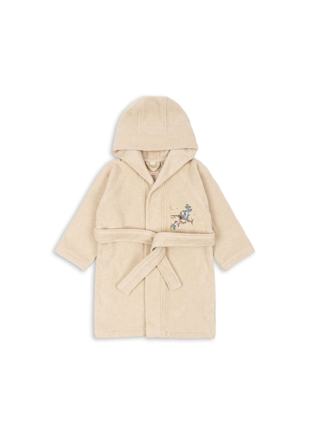 Hooded bathrobe with a decorative embroidery and a detachable belt.