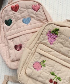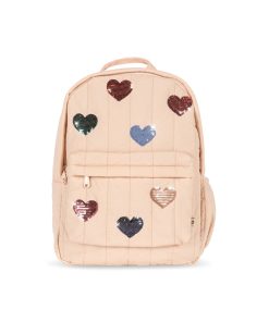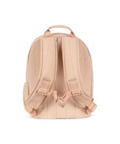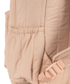 Soft and lightweight backpack in a quilted design with a practical bottle pocket on the side, small front pocket with a zipper, and a practical chest strap that helps adjust the weight and adds extra support.