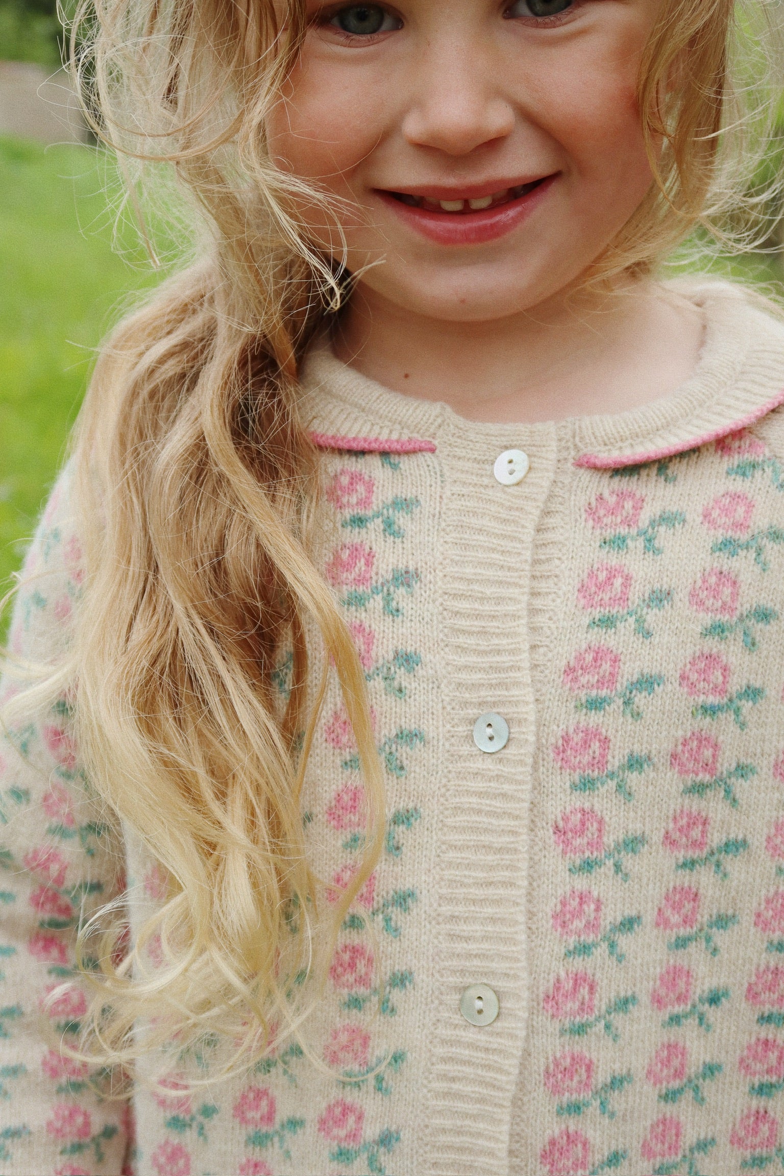 Soft and warm cardigan in a chunky wool blend. Finished with rib hems, regular round neck, and mother of pearl buttons in front.