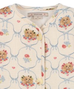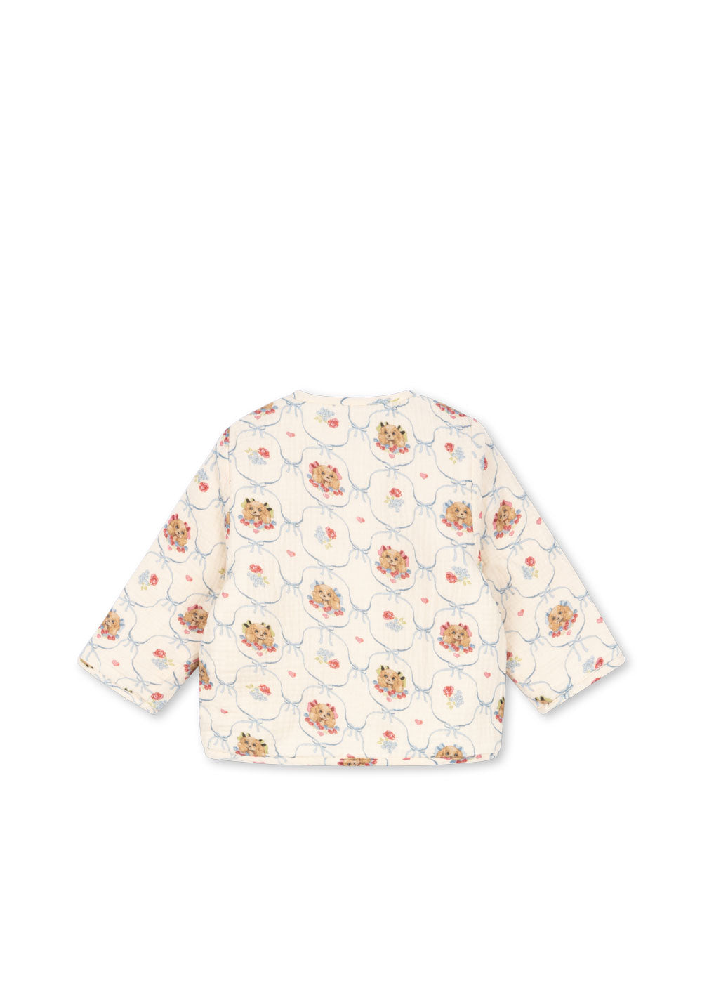 Padded jacket made from soft cotton muslin. Closes with decorative horn buttons.