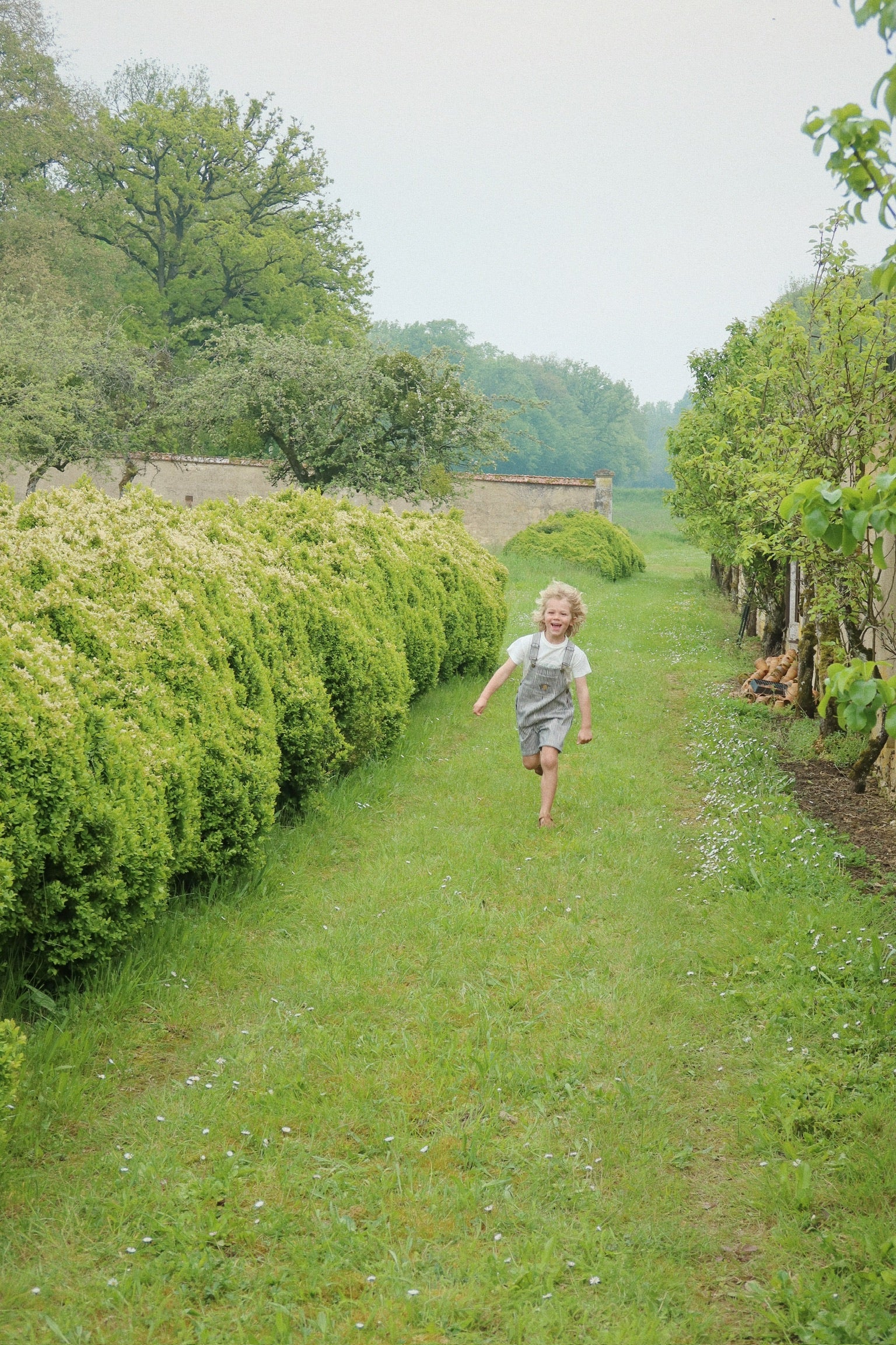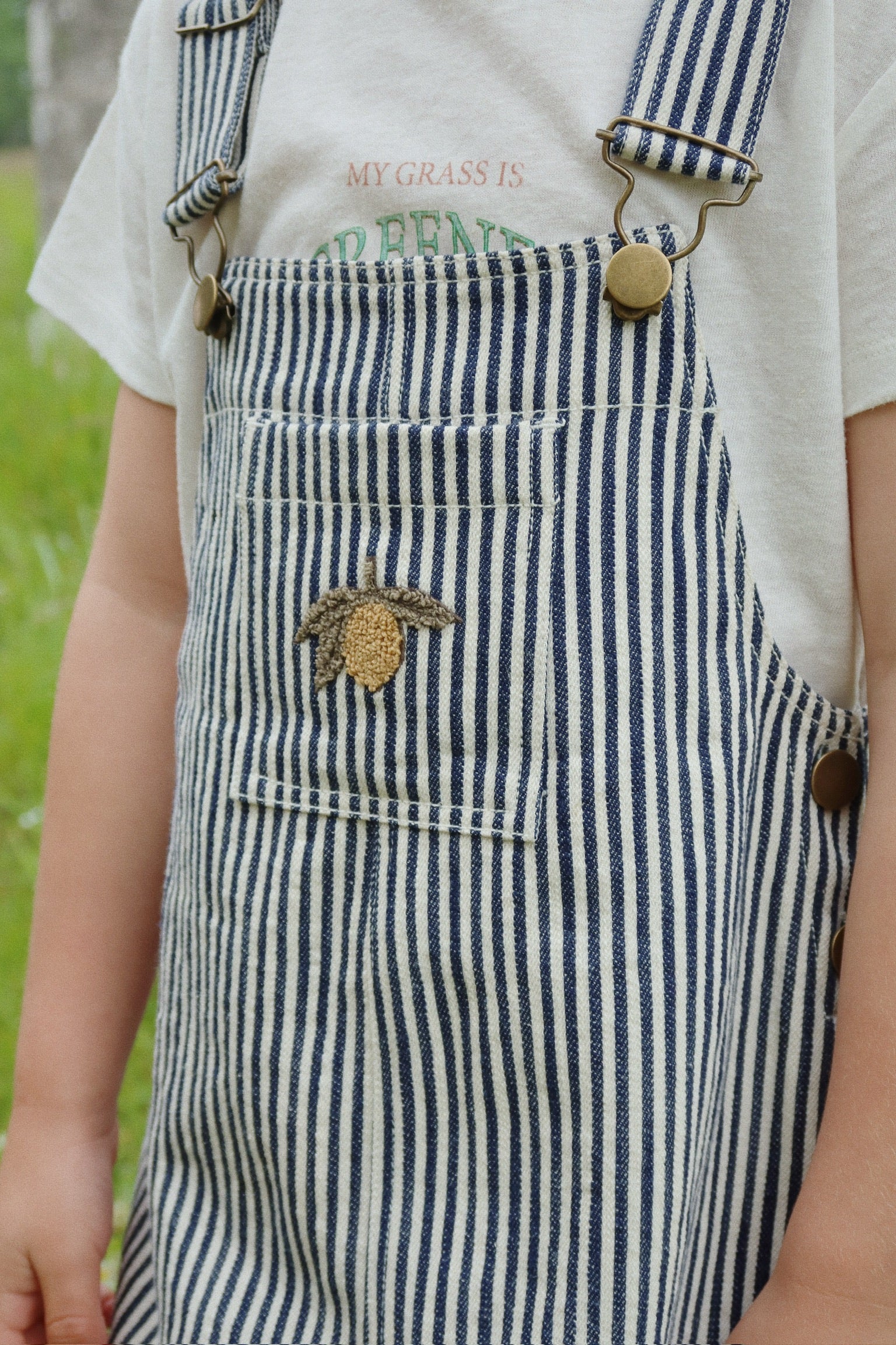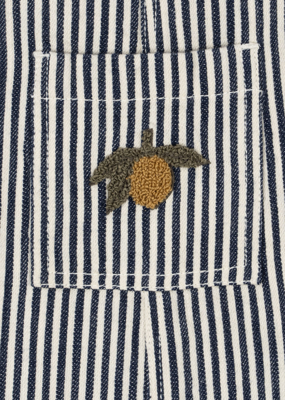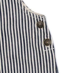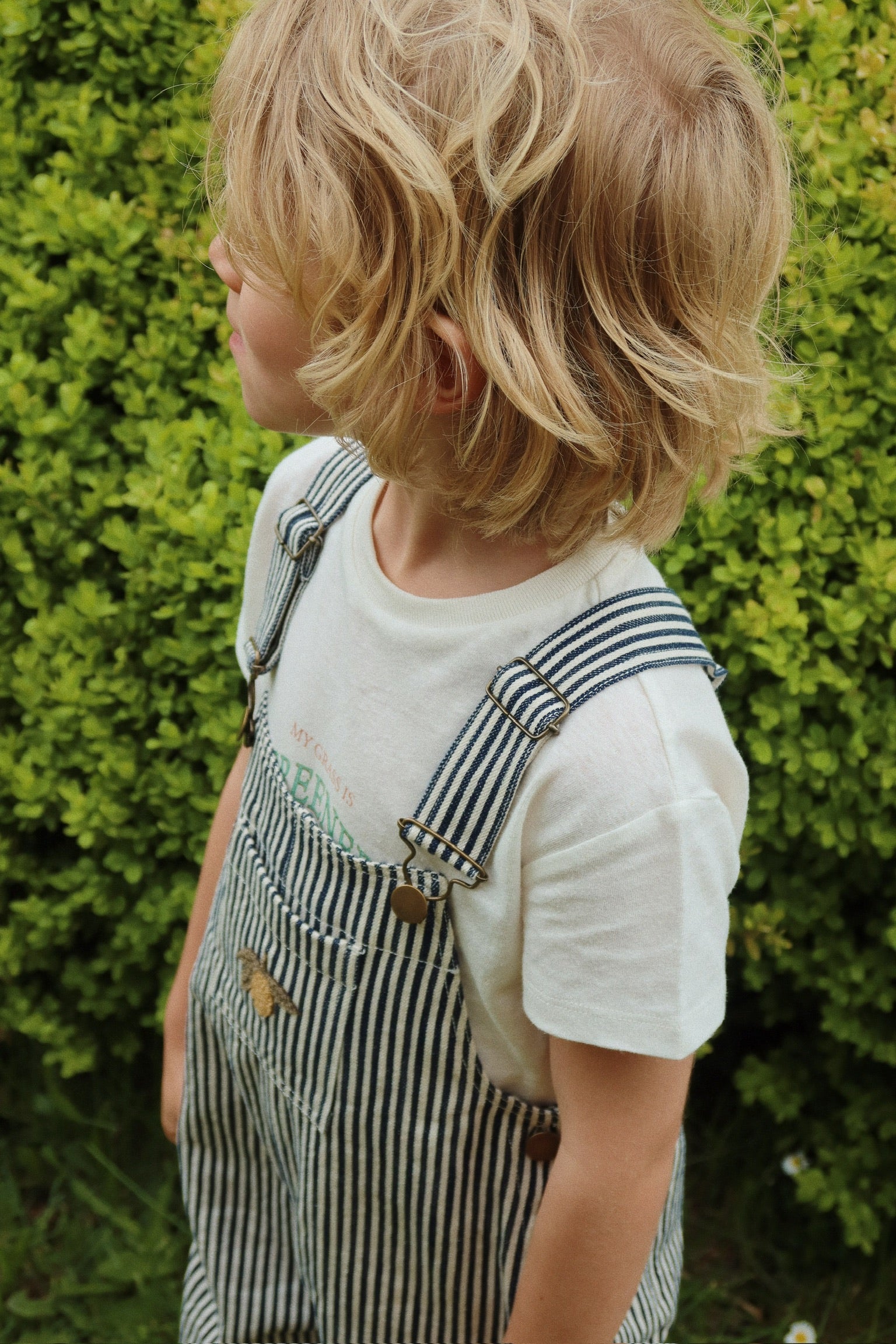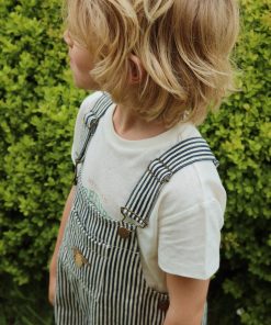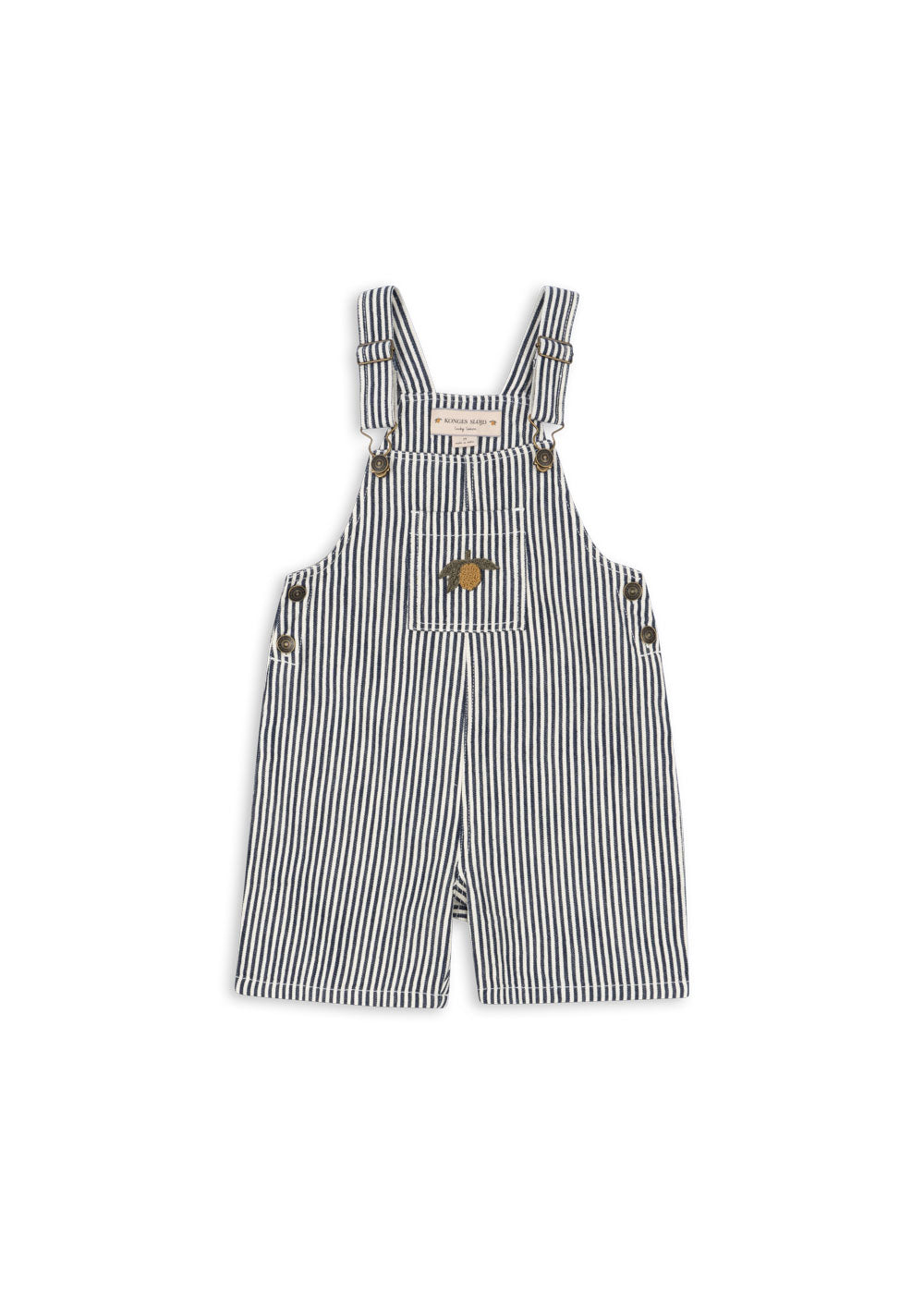Short overalls in a soft organic cotton twill fabric. Classic design with strap and buckle closure in front and buttons on the sides for easy dressing.
