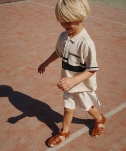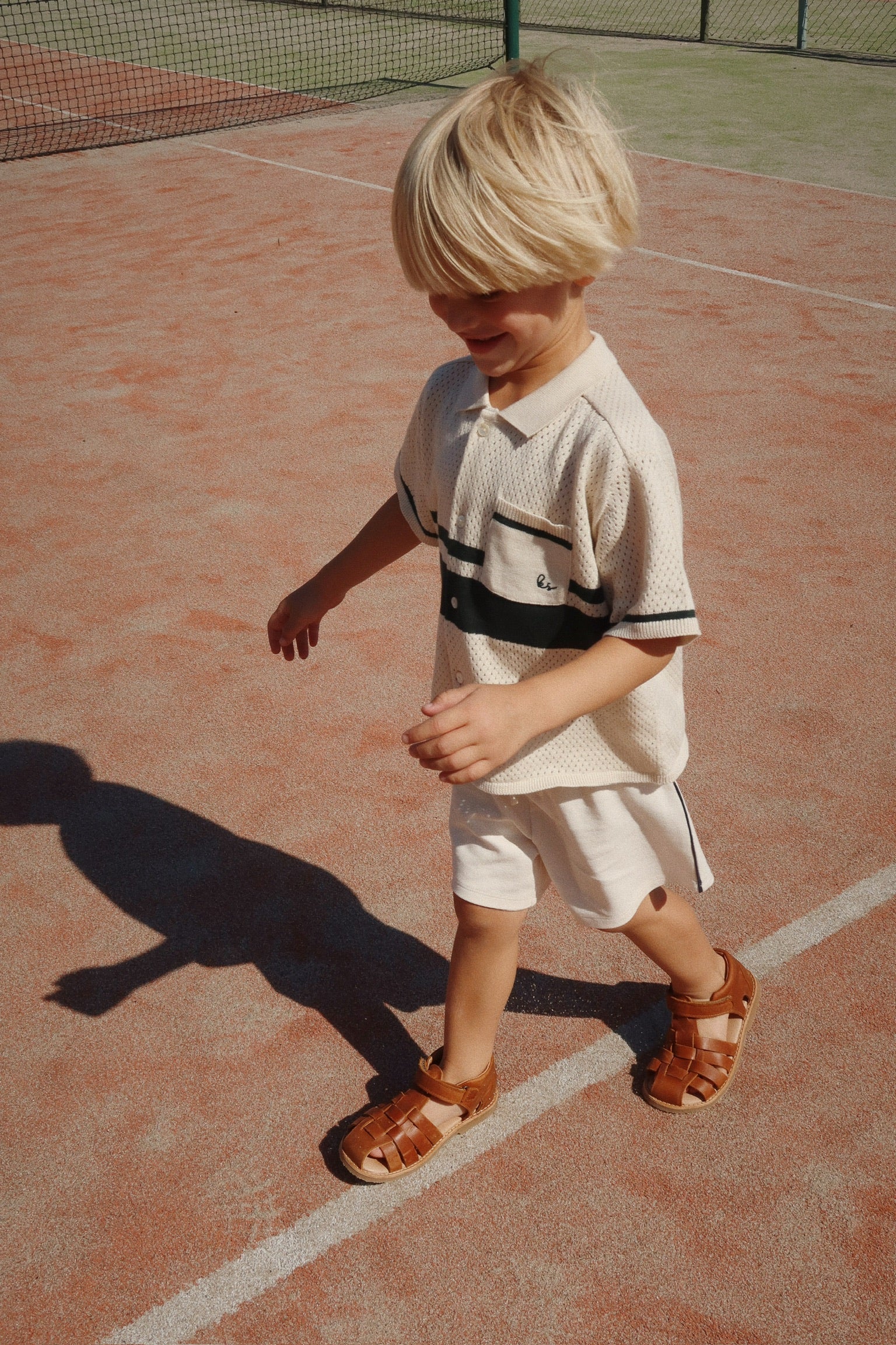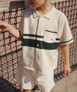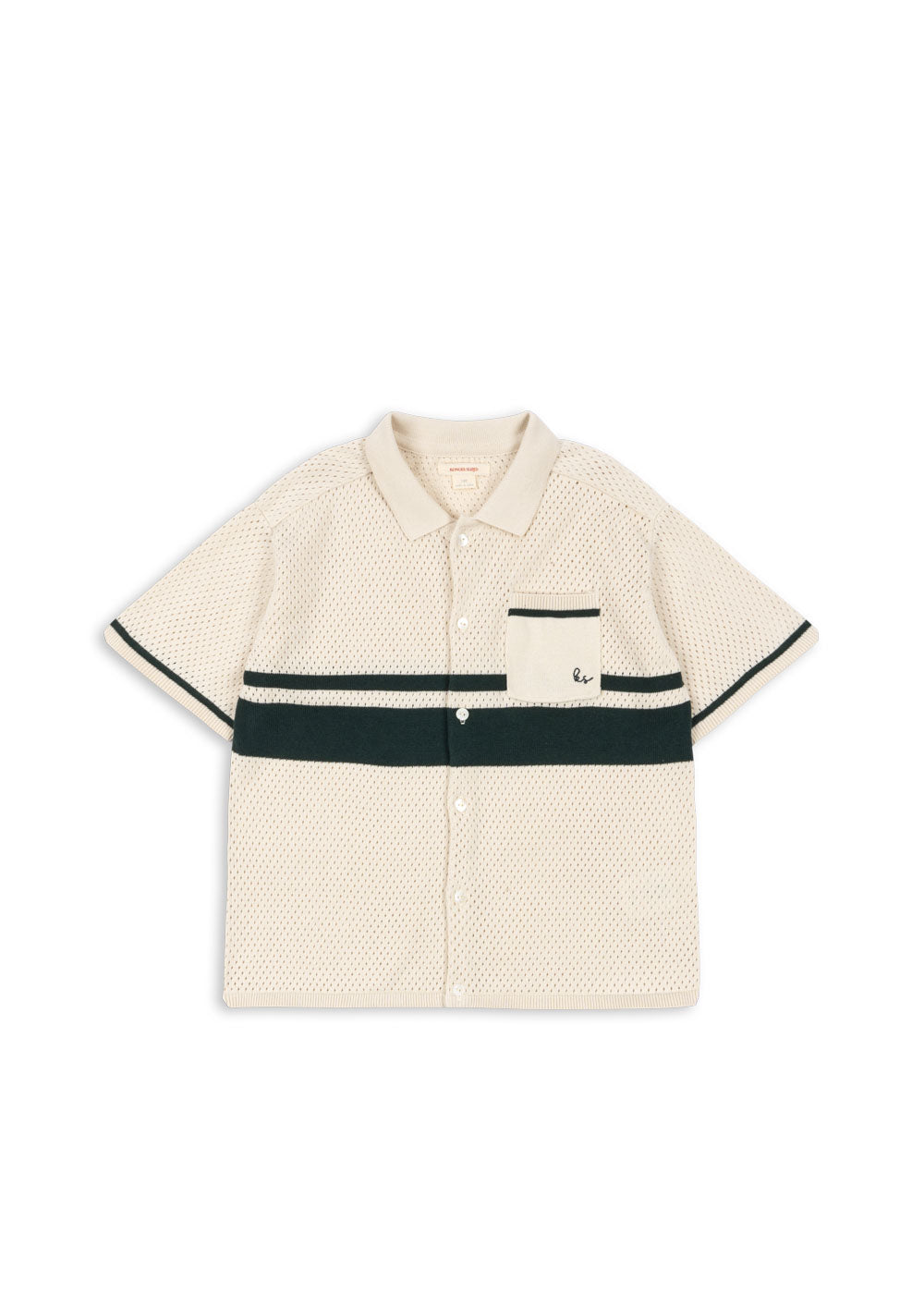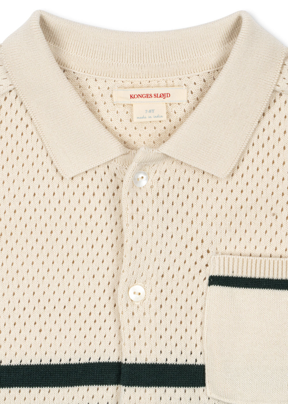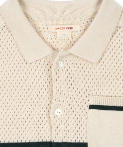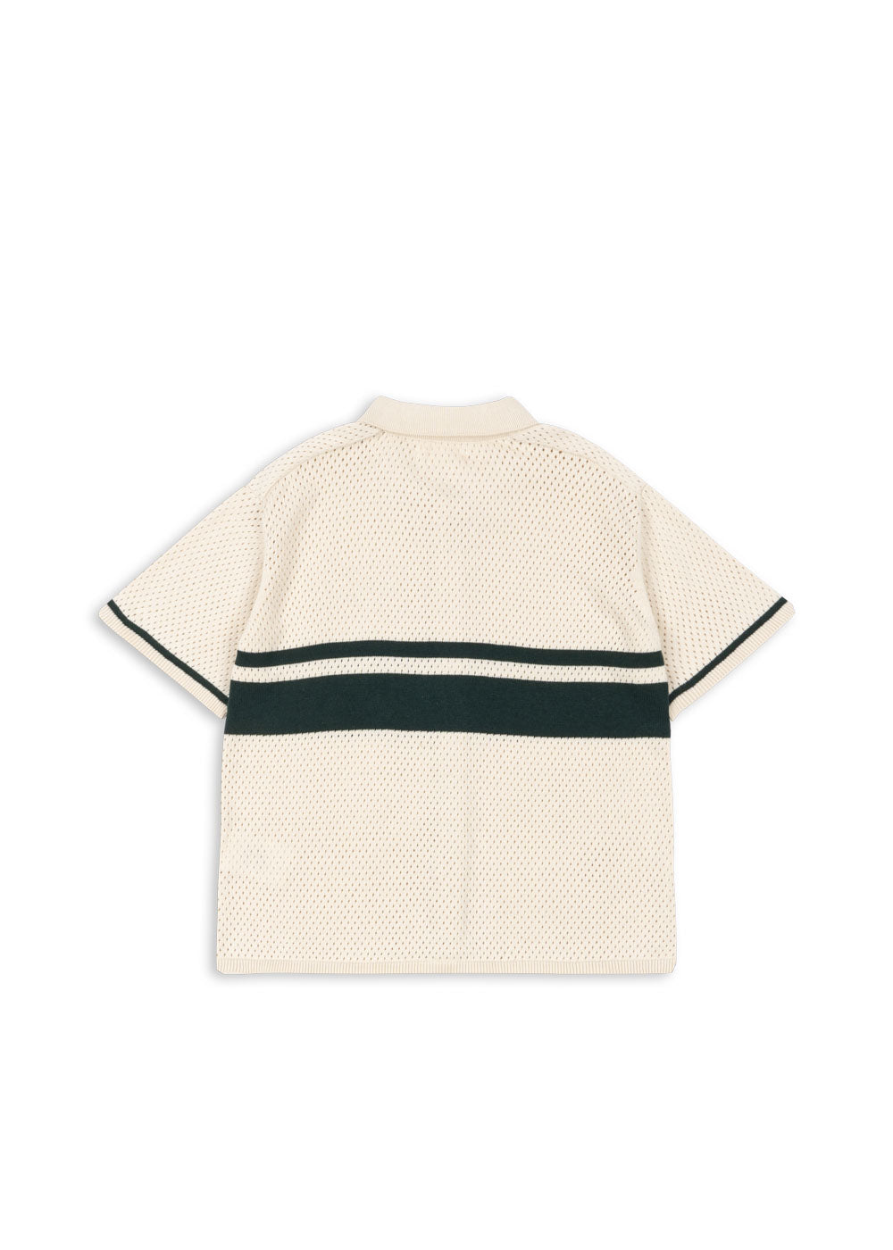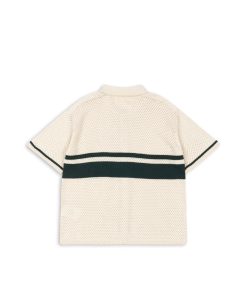 Polo-style blouse with a delicate hole knit pattern and classic collar.