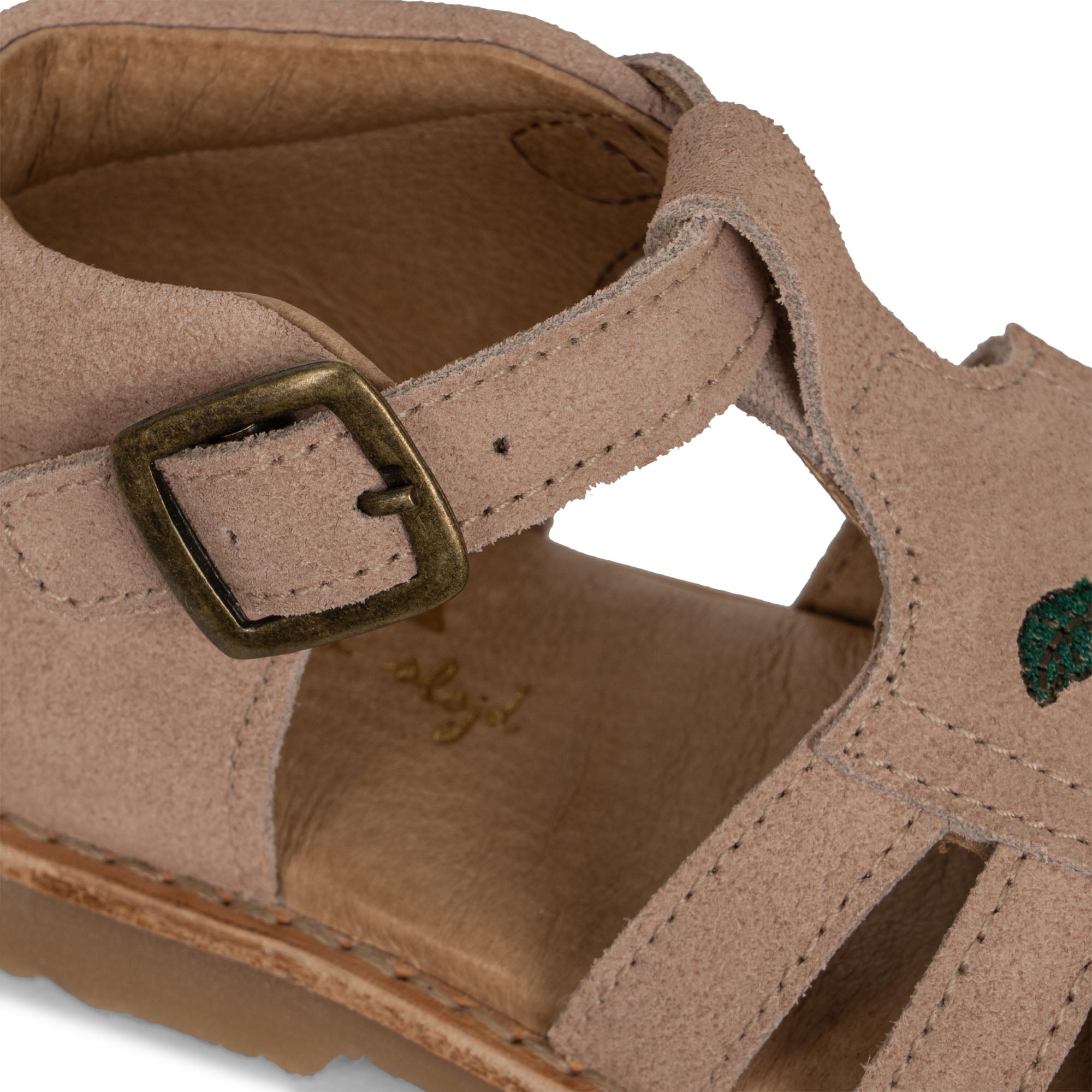 Sandal with buckle and strap closure. Made of 100% suede with a thermoplastic rubber sole for added stability and thermal resistance.