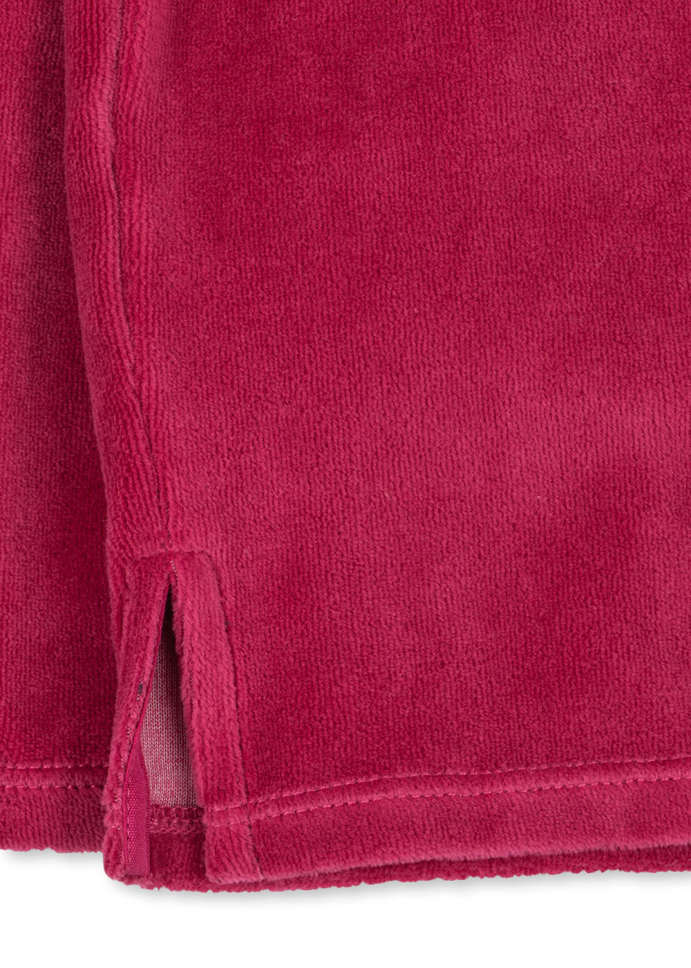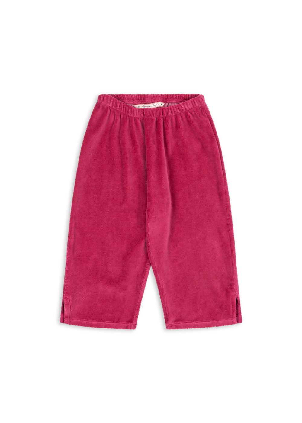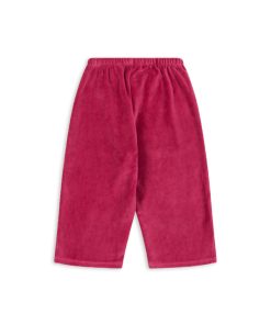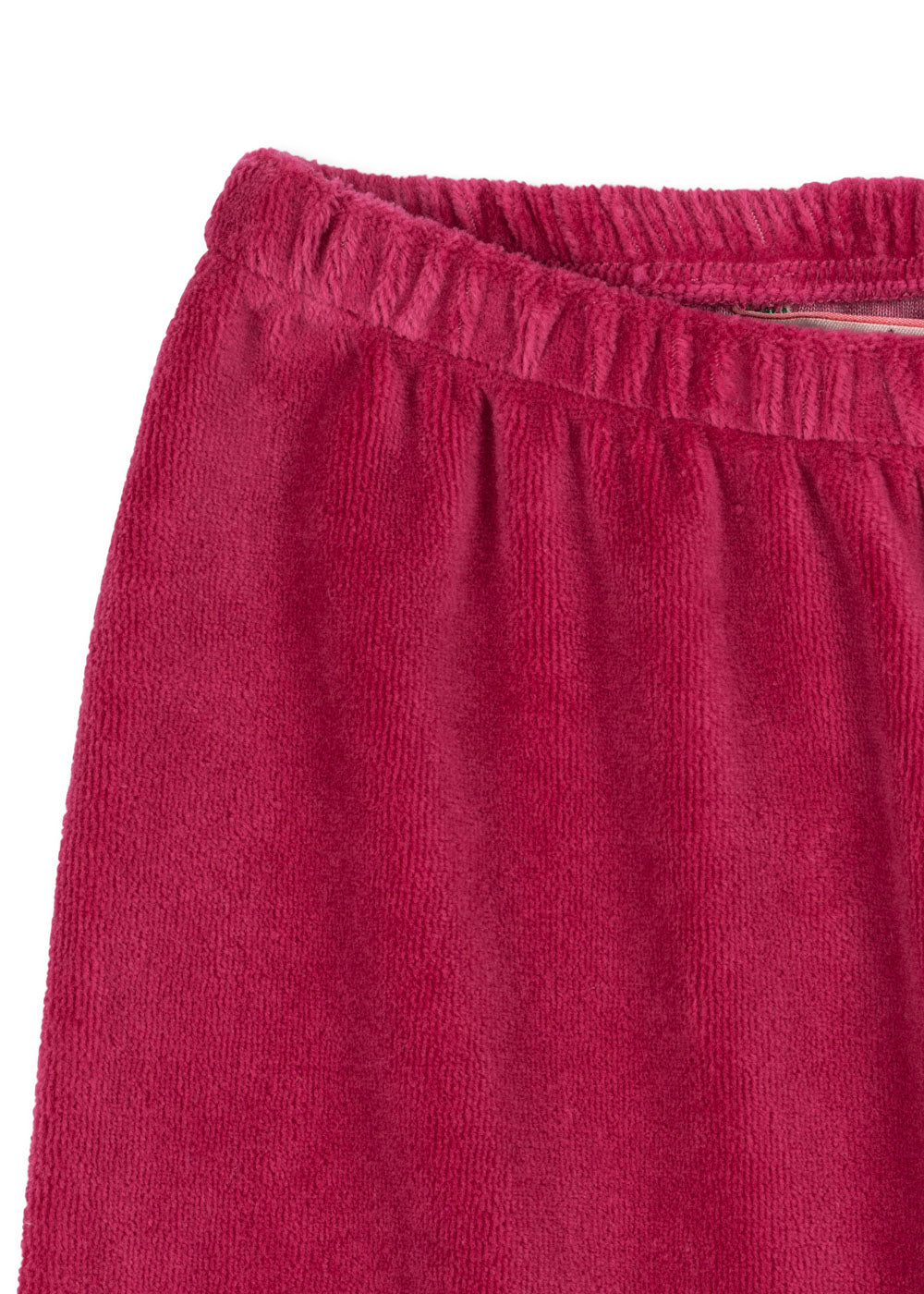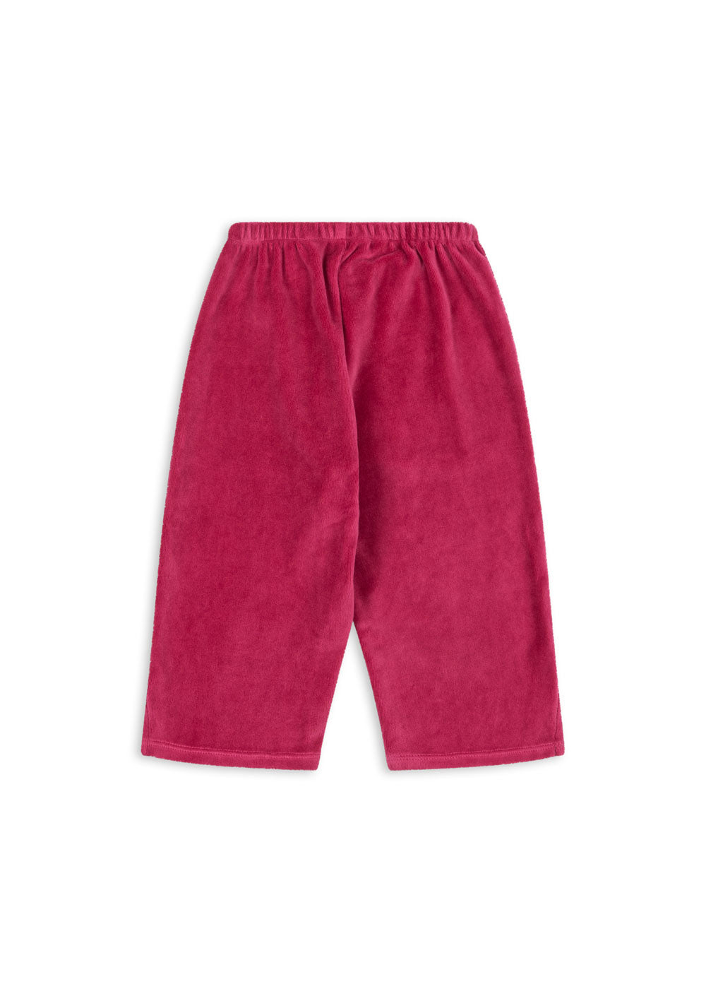 Soft velvet pants in a loose fit with a flexible elastic at the waist and cuffs.